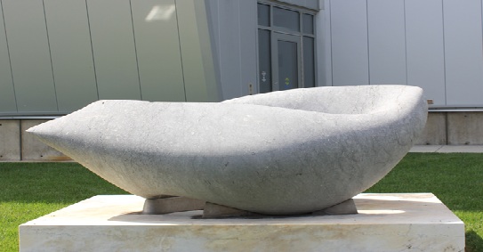 Curving, asymmetrically balanced shapes, sometimes with clefts or holes cut into them, characterize Poncet’s style. He maintains studios in Paris and in Carrara, Italy (famous for it’s marble quarry). His sculptures can be found in a number of corporate collections and public art museums. Embryonoire, Nero Atlantide, made of Carrara marble, was one of 18 sculptures commissioned from Poncet by Nathan Cummings, former chair of the Sara Lee Corporation in Chicago.